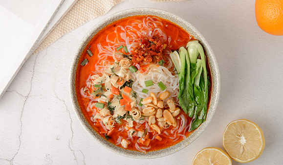 美味大膽嗦,解饞無(wú)腹擔(dān)。魔芋粉絲晶瑩透亮,含有葡甘聚糖,具有強(qiáng)大的膨脹力,產(chǎn)生飽腹感。